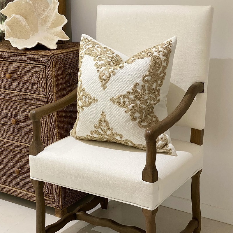 The traditional design of the Caleb occasional chair will add a timeless elegance to any home. Constructed from American oak with beautifully turned details and upholstered in a blended poly / linen off white fabric, its sure to elevate the look of any room.