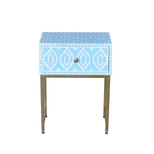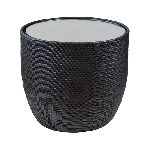Striking bold designed side table. Constructed from hand forged iron with a black finish and completed with an aged vintage mirror top.