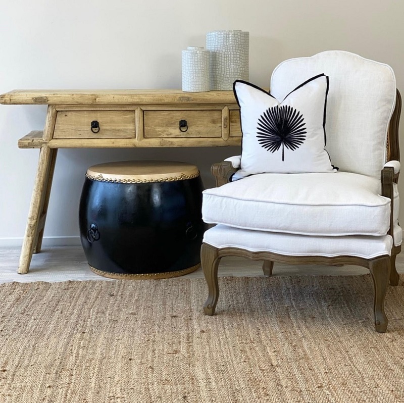 The classic vintage Chinese Drum table is a design staple. Each drum is hand finished and completed with a sturdy leather top and bottom, ideal as a side table.
