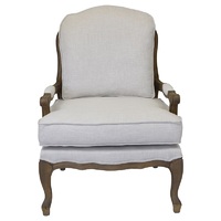 A timeless chair evoking a sense of sophistication and style. Beautifully finished American oak is complemented with a natural poly / linen fabric upholstery.